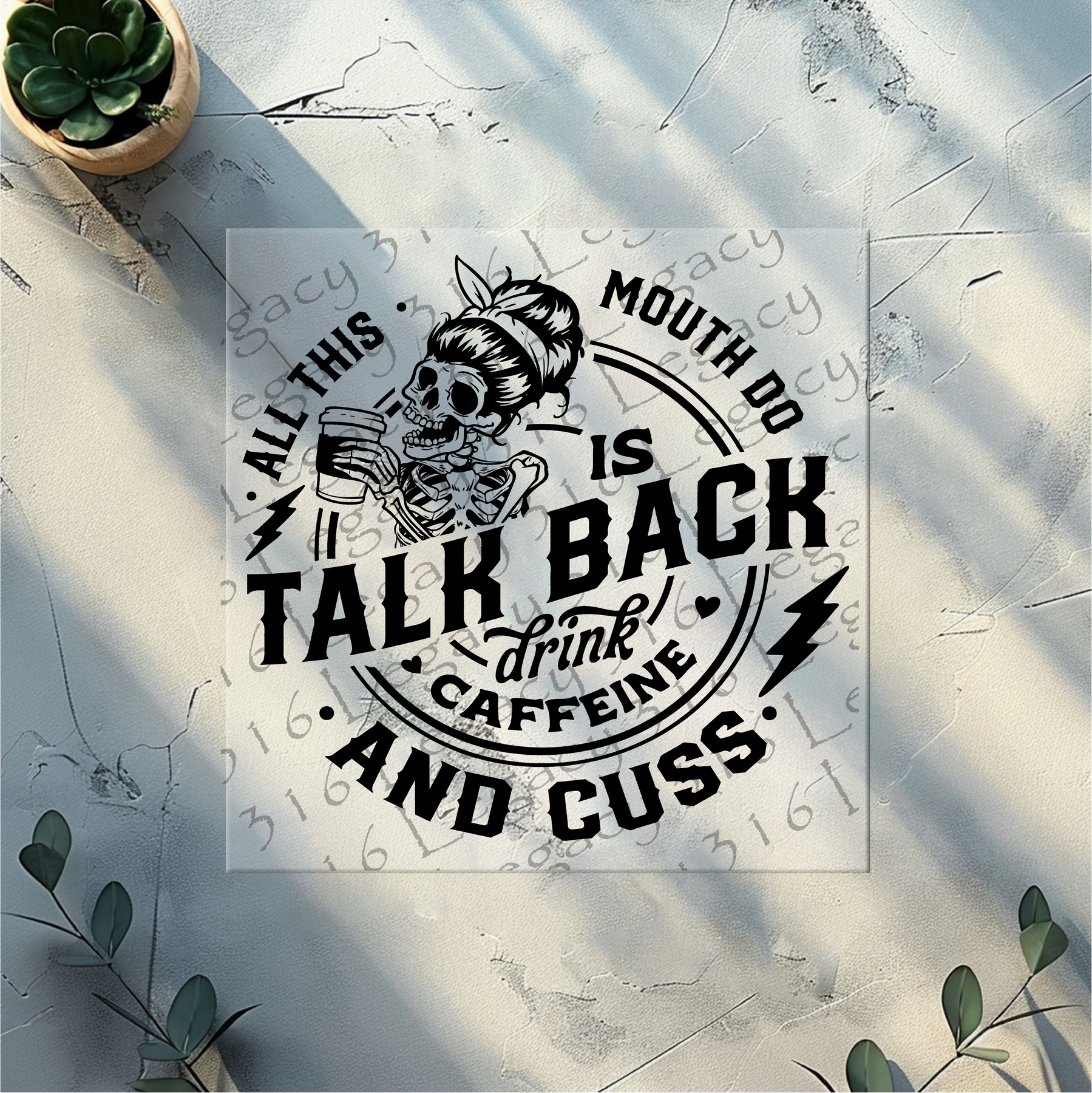 Talk Back Drink Caffeine and Cuss Skeleton- DTF Ready to Press