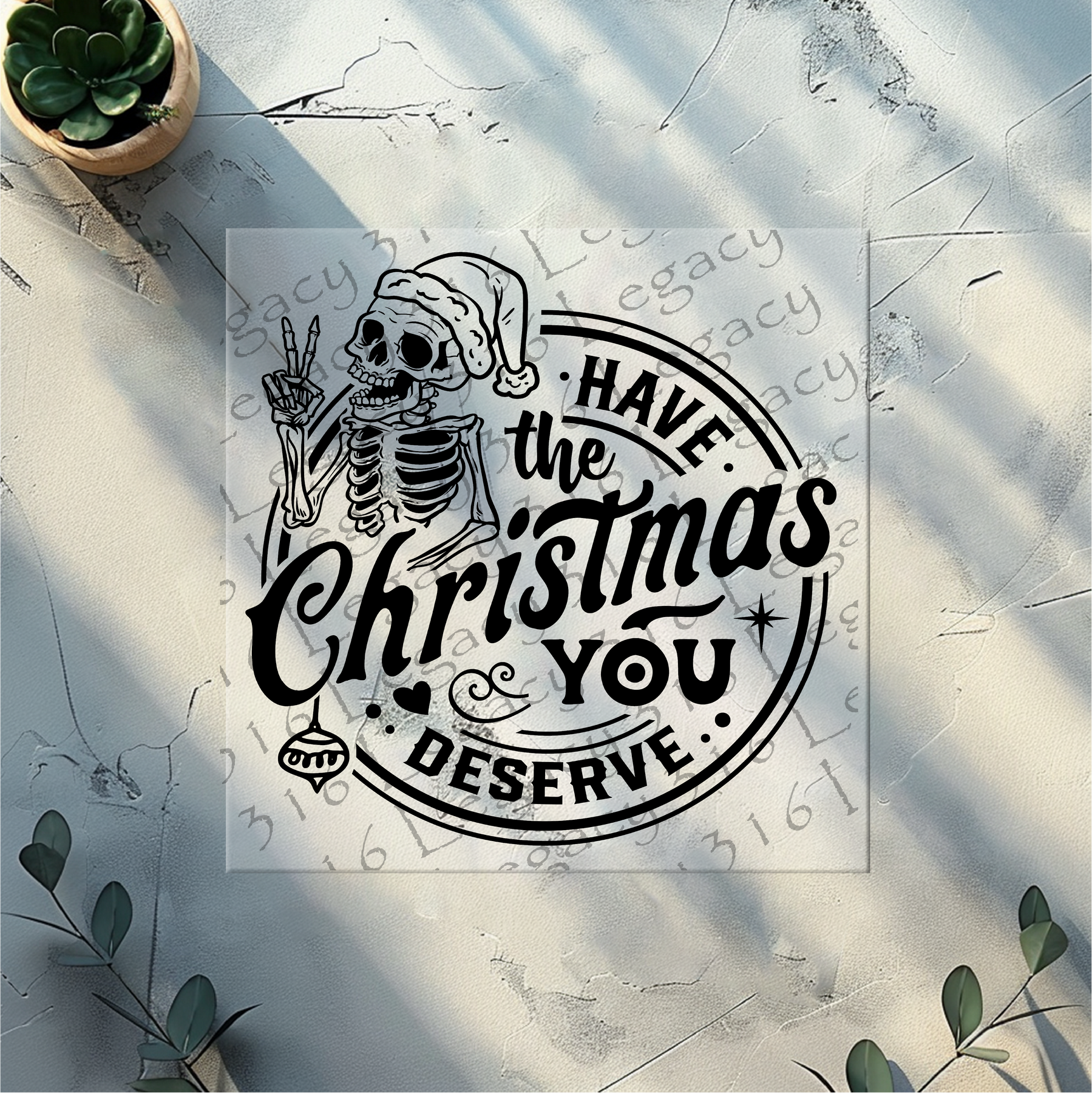 Have the Christmas You Deserve Black and White Skeleton- DTF Ready to Press