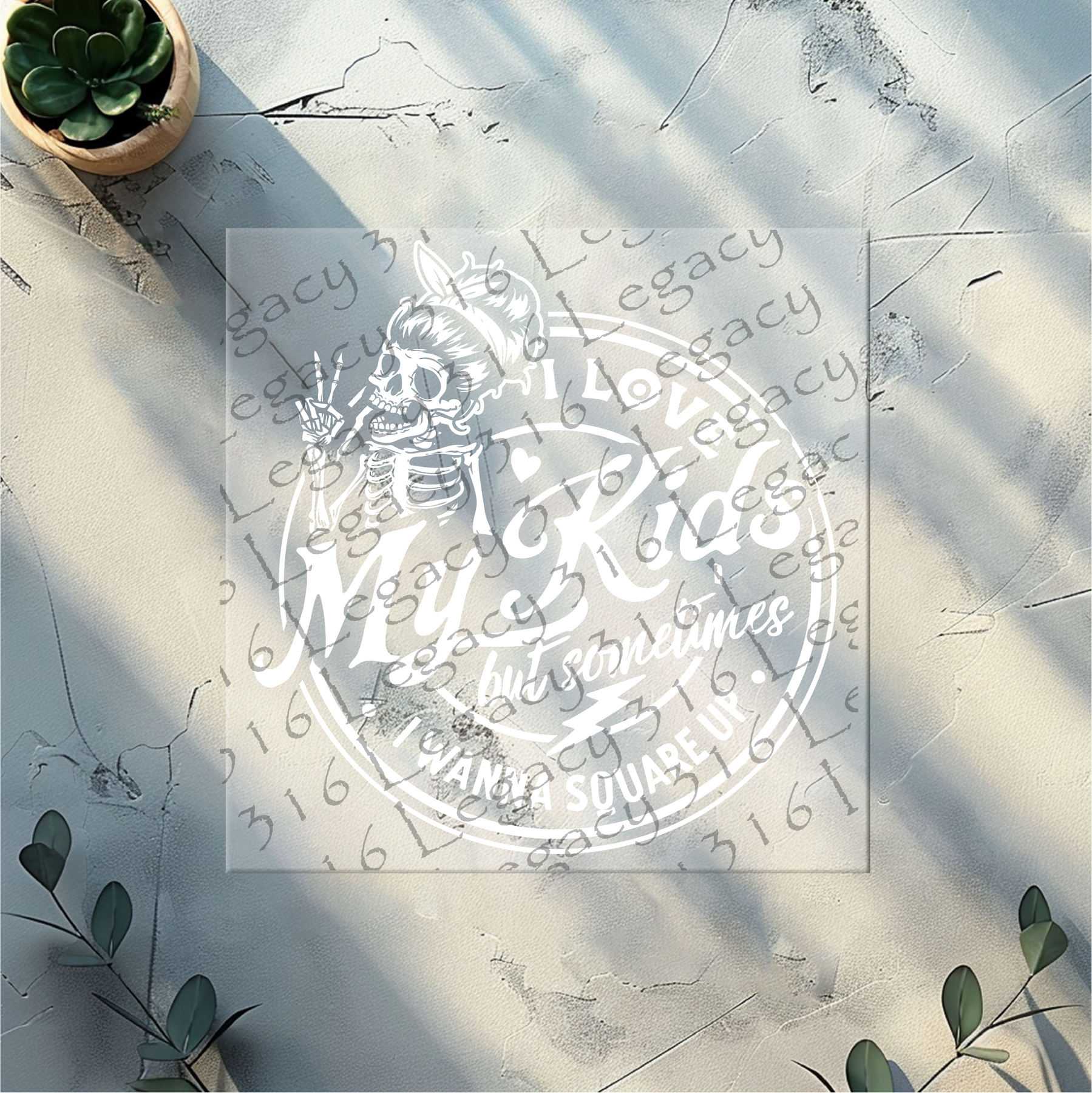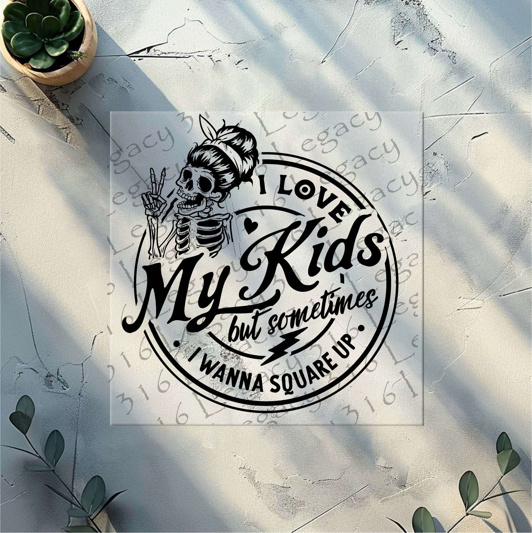 I Love My Kids Hair Bun Skeleton- DTF Ready to Press