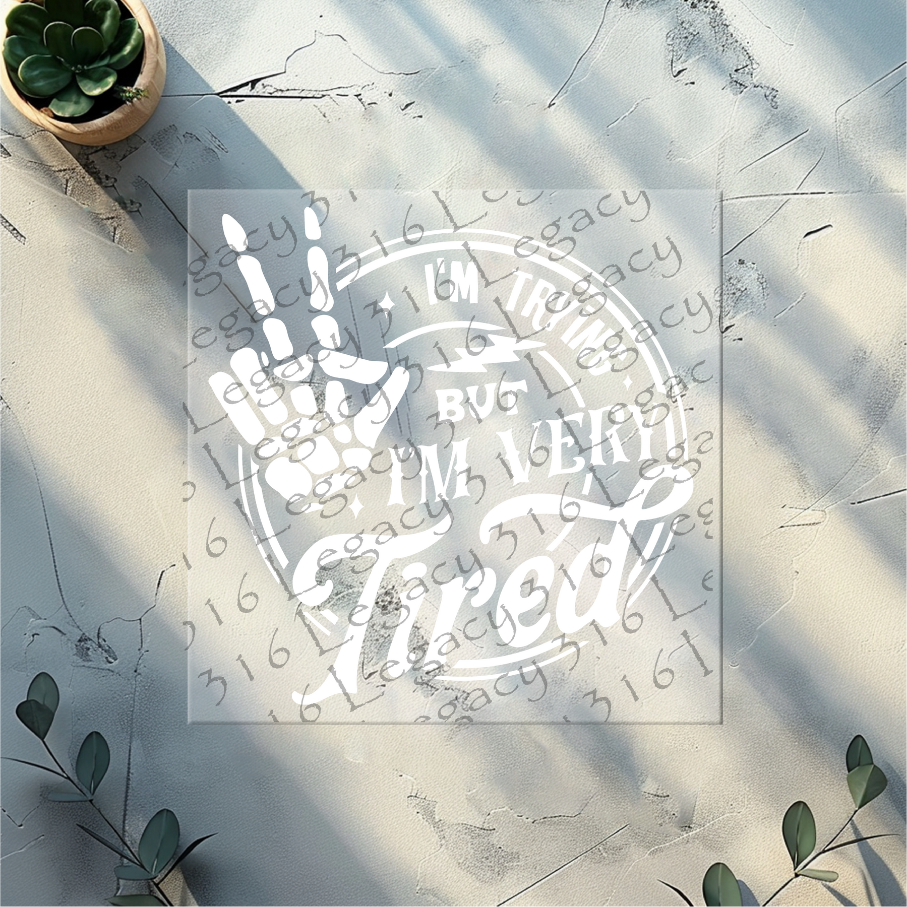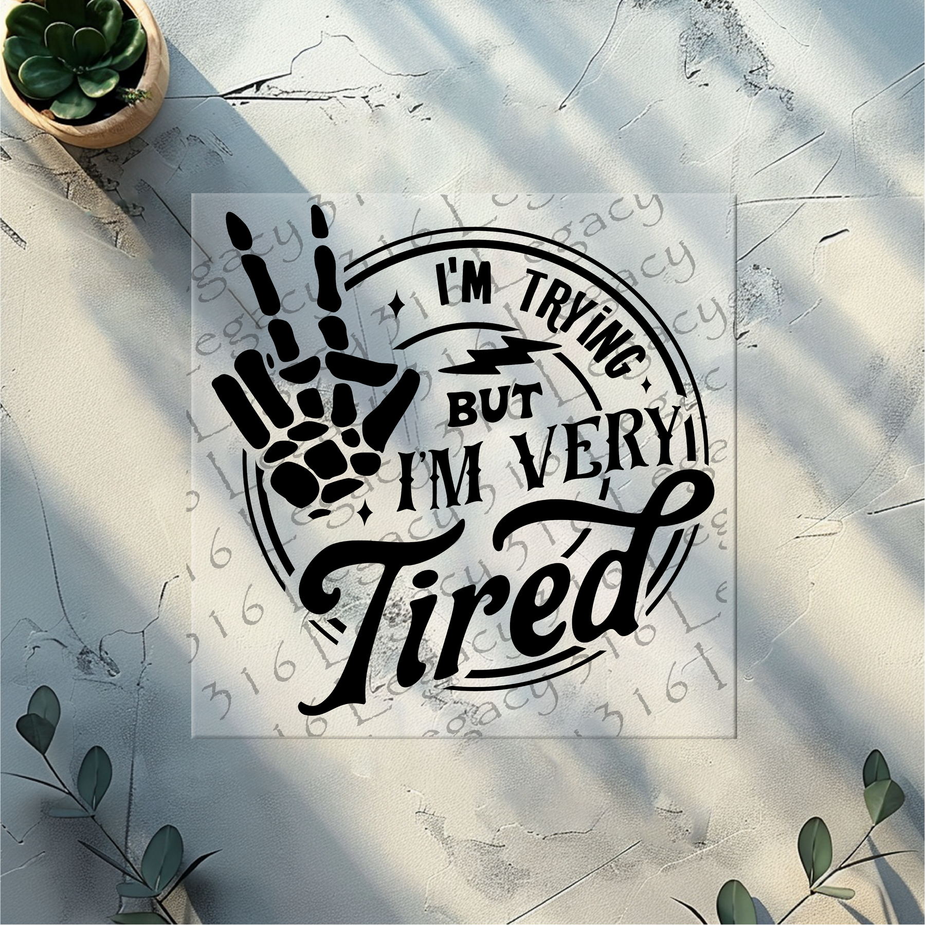 I'm Trying but I'm Very Tired Skeleton Hand- DTF Ready to Press