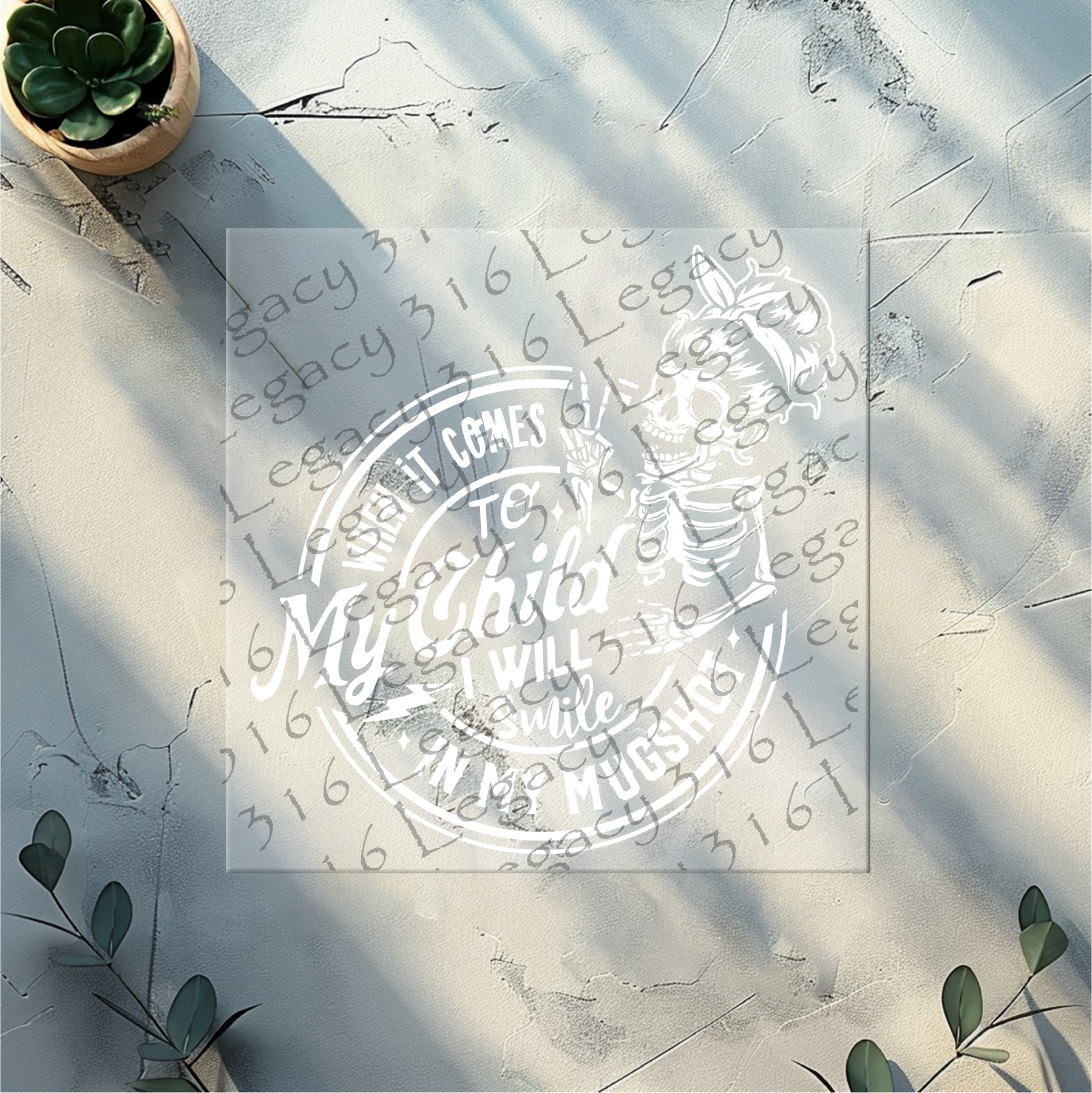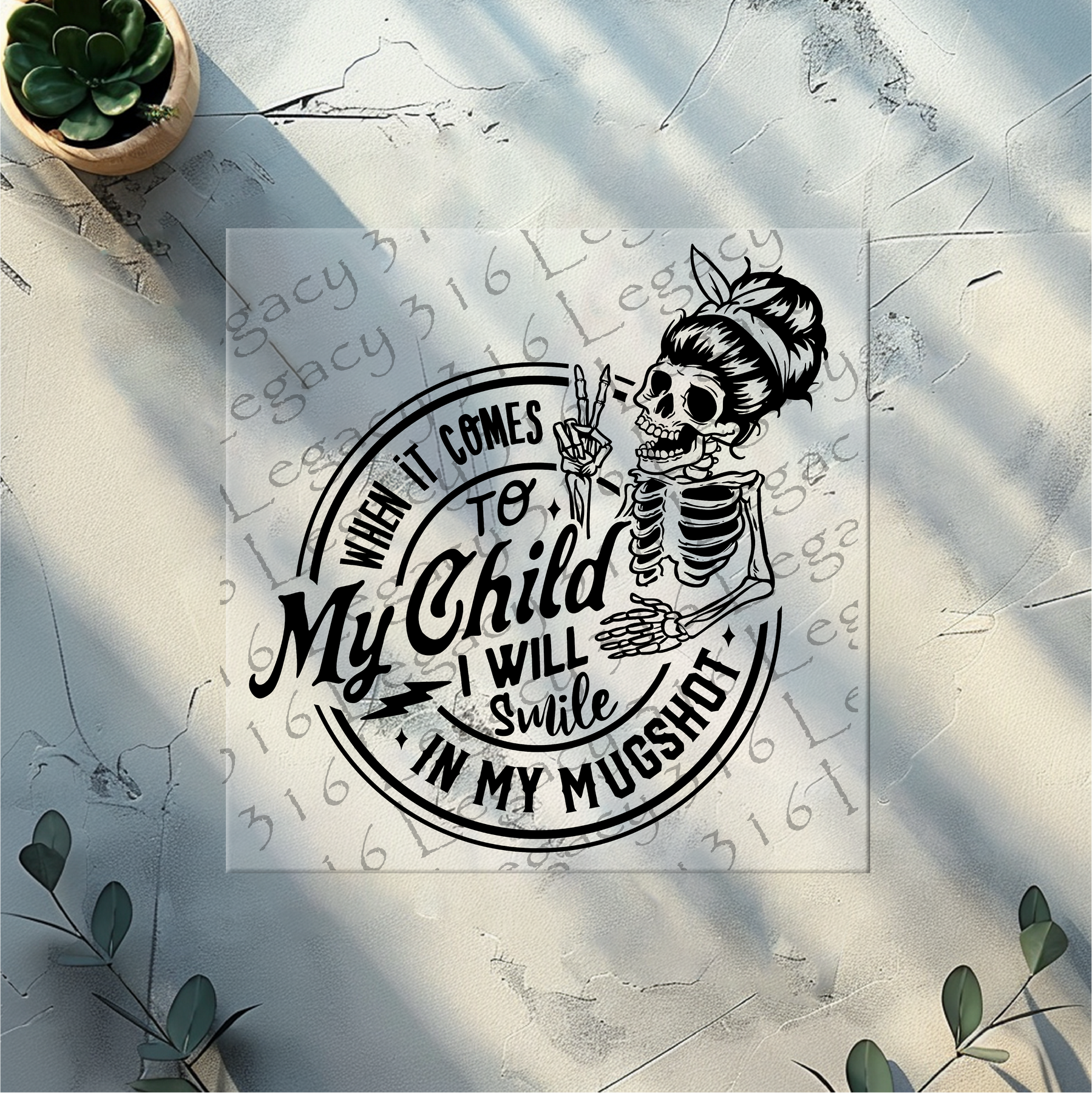 When It Comes to My Child I Will Smile in My Mugshot Hair Bun Skeleton- DTF Ready to Press